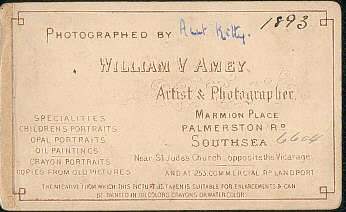 William V. Amey, Marmion Place, Palmerston Rd, Southsea. No. 6604 (Aunt Kitty 1893)