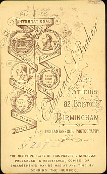 Edmund S. Baker, 82 Bristol St. Birmingham. No. 20728 (medals 1872, 1873, 1880)