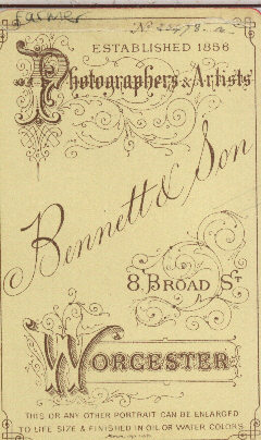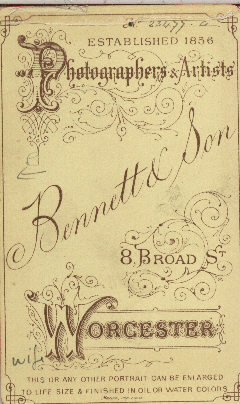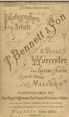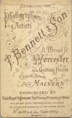 Bennett & Son, 8 Broad St. Worcester. Established 1856. No.49220a, Year 1888 - f8