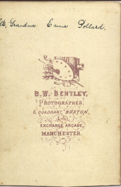 B.W.Bentley, 6, Quadrant, Buxton and Exchange arcade, Manchester. (Gt. Grandma Emma Pollard) - f6