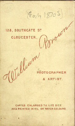 William Brown, 123, Southgate St. Gloucester [early 1870's?] - f7